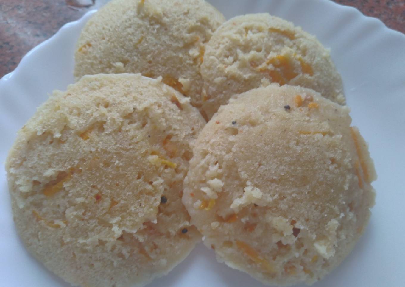 - Add carrot into the batter and mix well. now prepare idli stand. Grease idli plate with oil. at last add 1 spoon oil and 1/4th pinch baking soda and mix well. now pour batter in idli plate.